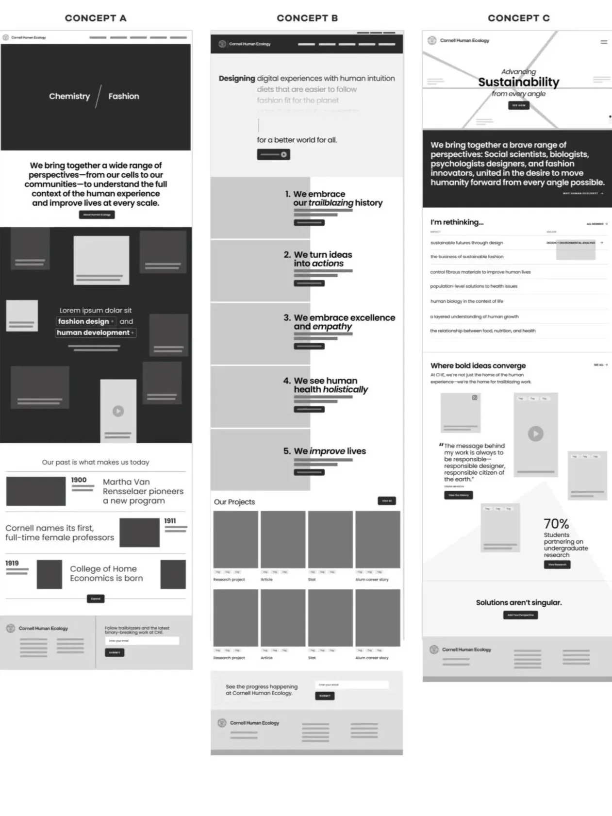 To attack the overlap and capture CHE’s brand, our experience concepts had to be powerfully effective—achieving both clarity and design excellence (the College houses a Human Centered Design department).