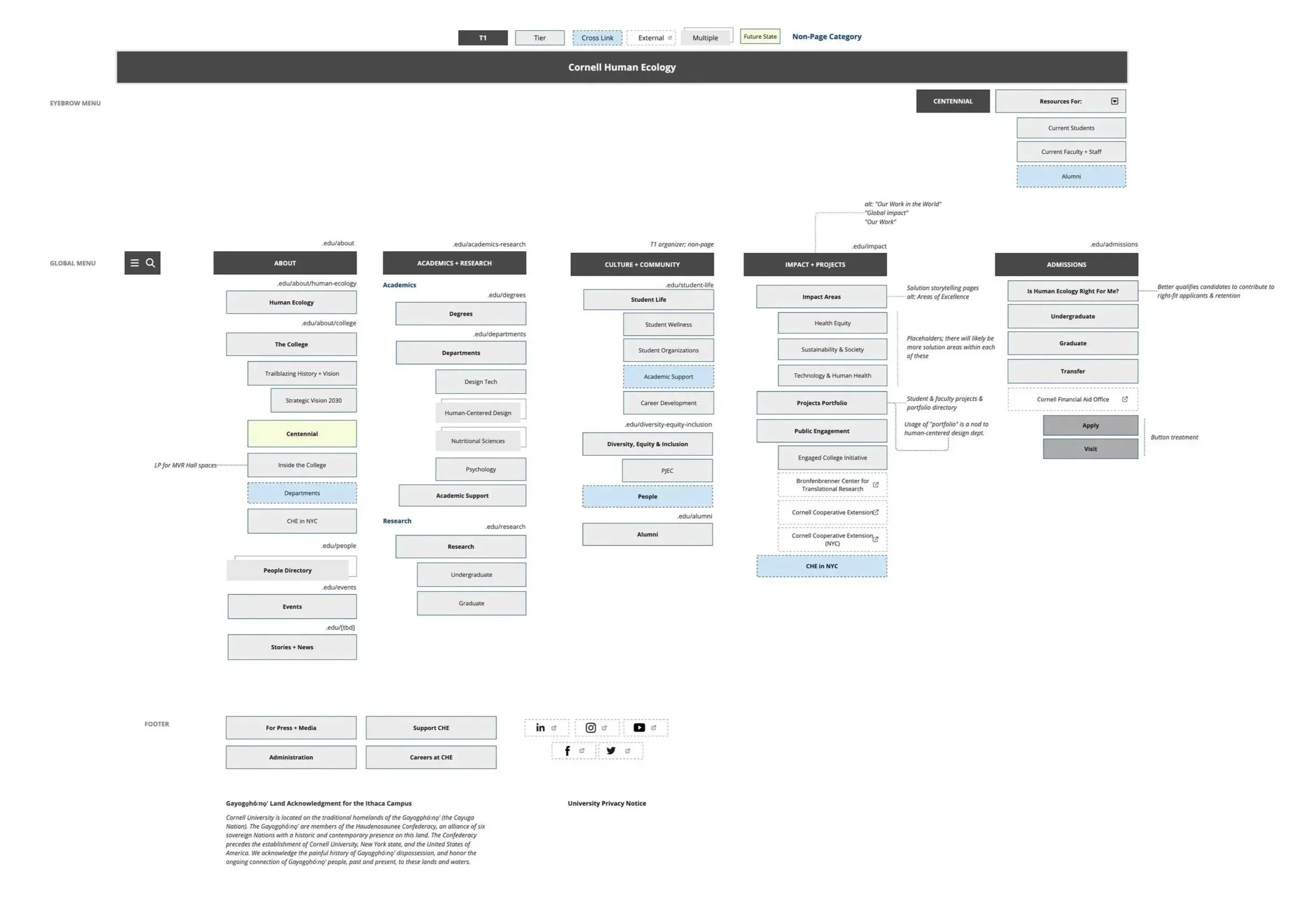 This presented challenges when it came to information architecture, global navigation (within the College and Cornell), and content syndication across the university.